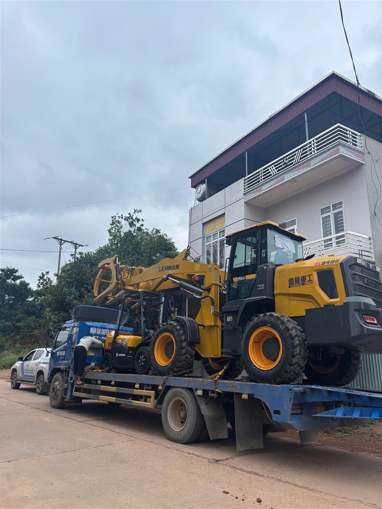 Trên chuyến xe chuyên dụng, 2 chiếc máy xúc lật Lehman cùng xe nâng LiuGong được vận chuyển an toàn, đúng tiến độ đến công trình của khách hàng. Tất cả thiết bị đều đã được kiểm định kỹ thuật, chạy thử và hiệu chỉnh hoàn thiện trước khi bàn giao, đảm bảo hoạt động ổn định – bền bỉ – hiệu suất cao ngay khi đưa vào sử dụng.